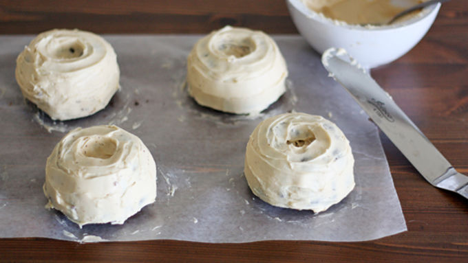 Step5Meanwhile, make the frosting: In a large bowl, cream together butter and cream cheese. Add caramel sauce and powdered sugar; beat until smooth. You may need to add more powdered sugar to get the correct consistency for frosting. Frost fully cooled cakes with frosting.