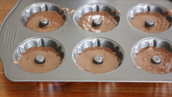 Step3Pour batter evenly into prepared Bundt pan cups. Bake cakes until a toothpick inserted in the center comes out clean, about 20-25 minutes.
