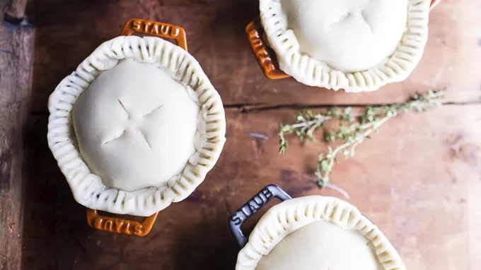 var configuration = {"title":"Mini Shrimp Pot Pies","introduction":"Cook up these cozy, and mini, shrimp pot pies for your next family dinner. ","servingSize":"1 Serving","image":{"small":{"media":"(min-width: 0px)","src":"https://mojo.generalmills.com/api/public/content/cpm1RdRgrEGJJPJOUWhVEA_webp_base.webp?v=c499b36a\u0026t=e724eca7b3c24a8aaa6e089ed9e611fd"},"medium":{"media":"(min-width: 500px)","src":"https://rms-media-prod.generalmills.com/6a378c55-cd35-4348-a6c8-692796f6974c.jpg"},"large":{"media":"(min-width: 767px)","src":"https://rms-media-prod.generalmills.com/6a378c55-cd35-4348-a6c8-692796f6974c.jpg"},"alt":"Mini Shrimp Pot Pies"},"contributor":{"label":"by:","name":"Half-Baked Harvest","displayDate":{"label":"Updated","date":"May 3, 2017"}},"ingredientGroups":[{"ingredients":[{"quantity":"2","description":"tablespoons olive oil"},{"quantity":"16","description":"shrimp, peeled + deveined and chopped"},{"quantity":"","description":"Salt and pepper, to taste"},{"quantity":"3","description":"tablespoons butter"},{"quantity":"1","description":"lb button mushrooms, sliced"},{"quantity":"2","description":"carrots, peeled and chopped"},{"quantity":"2","description":"thyme sprigs"},{"quantity":"3","description":"tablespoons flour"},{"quantity":"1/2","description":"cup white wine"},{"quantity":"2","description":"cups milk"},{"quantity":"1 1/2","description":"cups frozen peas"},{"quantity":"1","description":"box (14.1 oz) refrigerated Pillsbury™ Pie Crusts (2 Count)"}]}],"steps":[{"description":"Preheat the oven 375° F. Grease four mini ramekins. Gather the rest of your ingredients.","stepShotImageUrl":"//mojo.generalmills.com/api/public/content/ZS5dSvnXiU63FAjb9rvufg_webp_base.webp?v=dc3ba316\u0026t=3653fe2f5ecd4a47a5a51c97e429947c"},{"description":"Heat a large skillet over medium heat. Add olive oil, shrimp and a pinch each of salt and pepper. Cook for 3 minutes or until shrimp is cooked through. Remove shrimp from skillet and place on a plate.","stepShotImageUrl":"//mojo.generalmills.com/api/public/content/9VtBaqIPbkCKdDXwlnuYAQ_webp_base.webp?v=84ab7d9f\u0026t=3653fe2f5ecd4a47a5a51c97e429947c"},{"description":"To the same skillet, add butter. Once melted, add mushrooms and carrots. Cook for 5-8 minutes or until the carrots are soft. Stir in fresh thyme and cook another minute. Add flour and continue cooking a minute longer. Slowly pour in the wine and milk, whisking to ensure that no clumps form in sauce. Bring sauce to a low boil. Reduce heat and stir in peas and cooked shrimp. Simmer sauce for 5 minutes or until thickened. Remove from heat and let cool.","stepShotImageUrl":"//mojo.generalmills.com/api/public/content/ewjqytoN9EmG9UGorPRPDQ_webp_base.webp?v=49f0657a\u0026t=3653fe2f5ecd4a47a5a51c97e429947c"},{"description":"Unroll the rounds of pie dough and cut each round of dough into four triangles. Use your hands to fit half of the triangles inside the greased ramekins. Cut remaining triangles into 3 to 4 inch circles. Divide pot pie filling evenly among each ramekin. Place top piece of pie dough over the filling and pinch the two pieces of dough together to seal. Use the tines of a fork to create a rustic design going all the way around the pot pies.","stepShotImageUrl":"//mojo.generalmills.com/api/public/content/tmzc2ahZh0iaEZpaId4mGQ_webp_base.webp?v=c46ee3d7\u0026t=3653fe2f5ecd4a47a5a51c97e429947c"},{"description":"Place the pies on a baking sheet and bake for 35-40 minutes or until the filling is bubbling and the pie crust is golden. If the crust starts to get too brown before the pies are done, cover the pies with foil.","stepShotImageUrl":"//mojo.generalmills.com/api/public/content/2s_U4oZKN0um4aIwLvGZaw_webp_base.webp?v=68faa96b\u0026t=3653fe2f5ecd4a47a5a51c97e429947c"},{"description":"Serve the pies hot with fresh thyme.","stepShotImageUrl":"//mojo.generalmills.com/api/public/content/kgmU0KYF-UqwUjdHLIuYBg_webp_base.webp?v=4c17c7b6\u0026t=3653fe2f5ecd4a47a5a51c97e429947c"}],"tips":[{"title":"","description":"If you’re not a fan of shrimp, substitute with chicken.","category":"Substitution","tipShots":[]},{"title":"","description":"You can use any assortment of veggies in these pot pies. I think that butternut squash would be delicious!","category":"Variation","tipShots":[]},{"title":"","description":"It’s finally pot pie season, and I could not be more excited!\r\n\r\nThe cold weather is here, Halloween is just days away, and Thanksgiving and Christmas are soon to follow. Meaning, it’s cozy food season and I am SO game! Bring on the brie, pies and cookies ‘cause I’m ready!\r\n\r\nI’m kicking things off with these cute little Mini Shrimp Pot Pies. Perfect for an easy family dinner or for entertaining guests at a small dinner party.\r\n\r\nI know that chicken is traditional in pot pies, but I thought it would be fun to switch things up a bit and use shrimp. It’s delicious, and let’s be real, sometimes another chicken dinner can be a real drag.\r\n\r\nI used my favorite Pillsbury™ pie crust and filled these pot pies with yummy autumn vegetables like mushrooms, carrots and peas. A perfect well-balanced meal, if you ask me!\r\n\r\nEnjoy these mini pot pies warm with a little fresh thyme!\r\n\r\nI mean, really, don’t those just look delicious? So cozy, warm and perfect for this time of year!","category":"Editorial","tipShots":[]}],"kitchenTips":[{"title":"","description":"If you’re not a fan of shrimp, substitute with chicken.","category":"Substitution","tipShots":[]},{"title":"","description":"You can use any assortment of veggies in these pot pies. I think that butternut squash would be delicious!","category":"Variation","tipShots":[]}],"additionalContent":[],"faq":[],"tipCategories":[{"categoryName":"Editorial","heading":"More About This Recipe","cssClass":"recipePartStory","expandOnInit":false,"expandText":"More +","collapseText":"Less -","expandEventName":"","collapseEventName":"","image":"","tips":[{"title":"","description":"It’s finally pot p