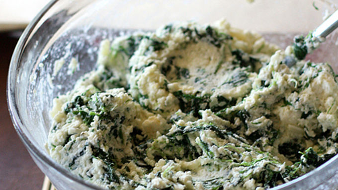 In a medium bowl combine spinach, ricotta, Parmesan, egg, garlic, and Italian seasonings. Add salt and pepper if desired.
