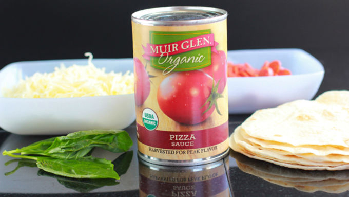 Preheat oven to 400°F. Empty the can of Muir Glen™ pizza sauce into a bowl and rinse out the can.