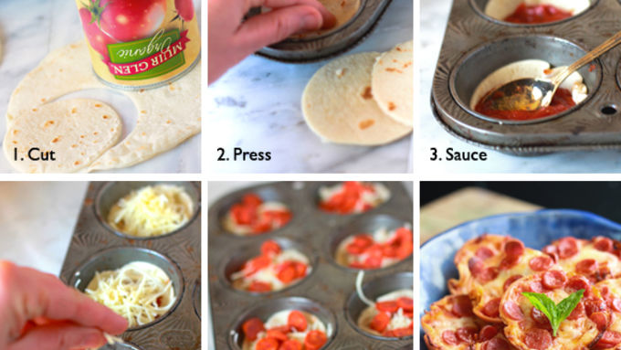 Wanna make the cutest, bite-sized pizzas around? Muir Glen™ pizza sauce and Old El Paso™ tortillas come together in a surprisingly simple way to make tiny deep dish pizza bites!