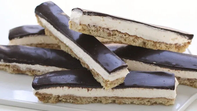 Step5Freeze for at least 3 hours. Remove from freezer and cut into 16 sticks (1 inch wide wide by 6 1/2 inches long).