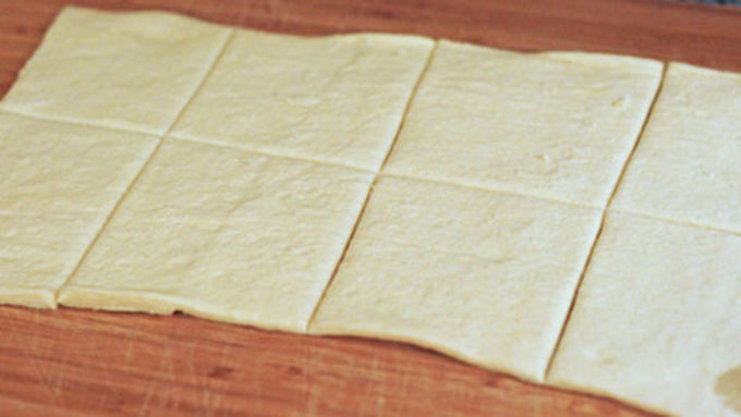 Step2Unroll the Pillsbury™ Original Crescent Dough Sheet on a cutting board and use a sharp knife or pizza cutter to divide it into eight rectangles.