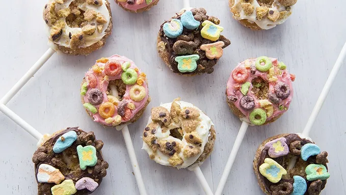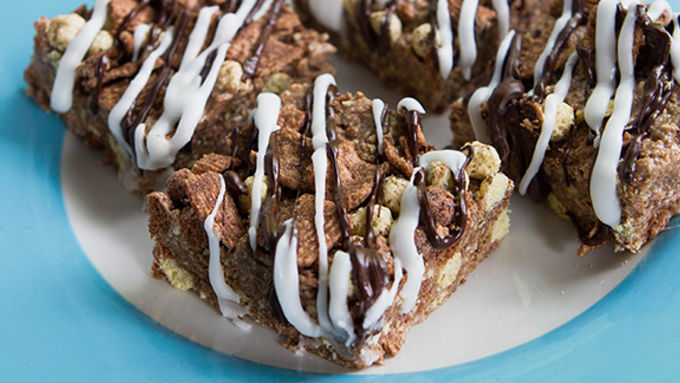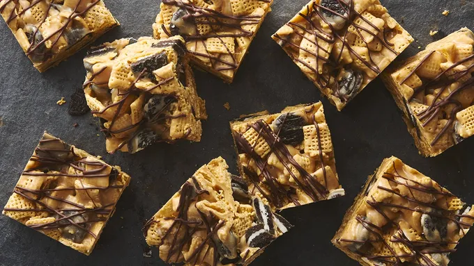 - Two kinds of chocolate cereal plus the usual crispy bars stuff make these easy, gooey chocolaty treats doable in minutes. Soft and gooey, these bars call for just a few easy ingredients and taste so good, the kids in one household called them “utterly ahhhmazeballs." Get your main ingredients lined up: Hershey™’s Cookies & Cream AND Chocolate Toast Crunch (for that extra chocolatey kick), butter and marshmallows. From here things move quickly, so buckle up and get ready for dessert. Now, if you’re feeling fancy, you can pipe a bit of melted dark chocolate and Betty Crocker vanilla frosting up top. It’s like extra, extra cookies and cream flavor. But they taste great plain too. Once the bars cool, serve them up to everyone you love!