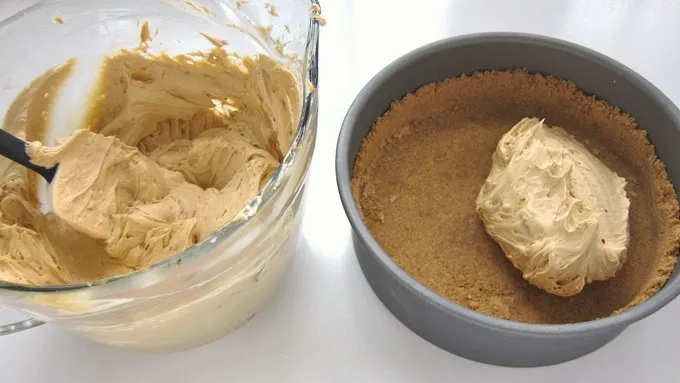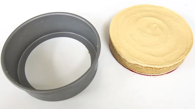 Spread into an even layer and chill until set. If you are in a hurry, pop the cheesecake into the freezer for 2 hours; otherwise, refrigerate for at least 8 hours. Once the cheesecake is set, remove it from the pan.