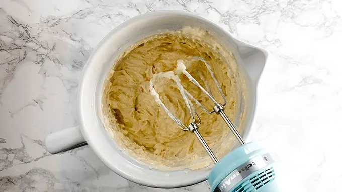 Step5Add softened cream cheese, yogurt and powdered sugar to a mixing bowl and beat with an electric mixer for 1 minute or until smooth creamy, and combined.