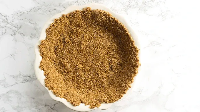 Step3Stir melted butter into crumbs until well combine and press tightly into a 9-inch pie plate. Place in freezer for 10 minutes.