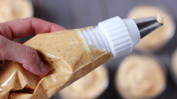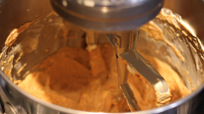 Step3To make the filling, use a food processor or electric mixer to whip the cream cheese until smooth. Add in the pumpkin puree, yogurt, sugars, cinnamon, nutmeg and cloves, and continue mixing until smooth. (Although a few little lumps are ok!)