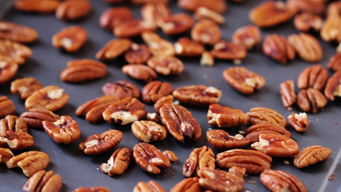 Step1Preheat oven to 400°F. Spread out pecans in an even layer on a baking sheet. Toast for about 5-7 minutes until fragrant. Remove from oven.