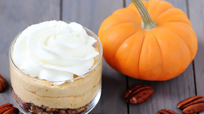 - Delightful little pumpkin cheesecakes with a salted pecan crust…delish! Who loves cheesecake? Pumpkin pie?? Pecan pie??? Well if you raised your hand to any of those, I’m pretty sure you are going to love these cute little No-Bake Salted Pecan Pumpkin Cheesecakes! These delightful little desserts are made with a buttery salted pecan crust. Then topped with a spiced pumpkin cream-cheese filling. And then of course, topped with a little whipped cream…just because. But the best part is that there is no baking required! Just whip everything together and press it into your favorite serving dishes (glass pots, ramekins, or even make one big pie), and you’re good to go in less than 30 minutes. My friends adored these! Garnish on top with a pecan, or just serve as is. You’re going to love these! So cute, quick and easy…and delish! More Mini Desserts Love desserts served individually portioned? Then try some more!