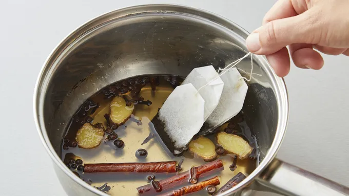 If you’re curious how we could make a sangria without any wine, you’re not alone. We were pretty stumped at first, too. To mimic the dry, robust flavor of red wine, we had the genius idea to swap in black tea. Then we steeped rich, autumnal spices in simple syrup for a burst of spiciness. The results? A citrusy, fizzy, spiced crowd-pleaser.