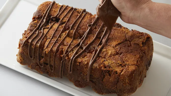 Step7Spoon remaining 1/4 cup Nutella® spread into 1-quart resealable food-storage plastic bag. Cut small opening from 1 corner of bag, and drizzle over top of warm monkey bread. Pull apart to serve. Serve warm.