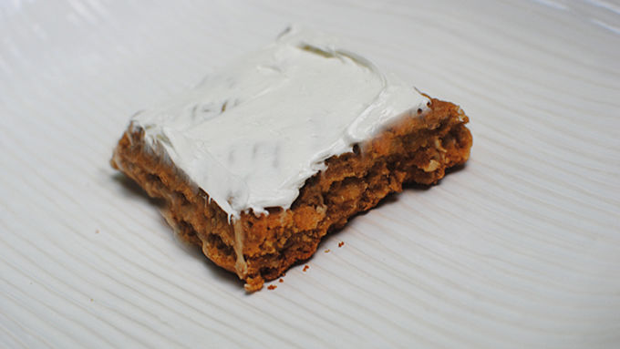 Step1Unwrap the oatmeal squares and spread with frosting.