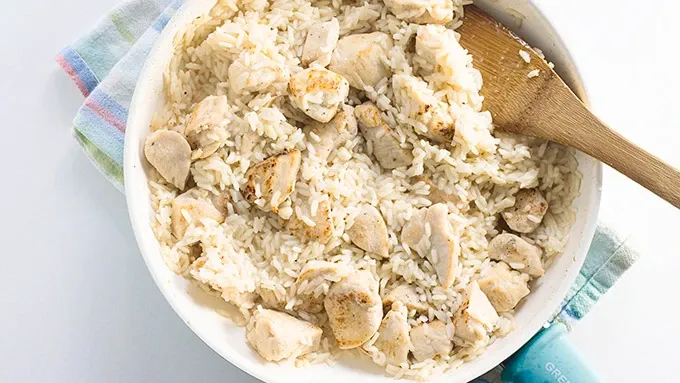 var configuration = {"title":"One-Pot Creamy Garlic Chicken and Rice","introduction":"Nothing beats this one-pot creamy chicken and rice recipe when it comes to convenience or comfort. If you could have a no-hassle garlicky, delicious chicken and rice dish on the table in less than 30 minutes with only one pot to clean, why wouldn’t you? Also, we can pretty much guarantee you won’t have any leftovers to put away, either. So, there’s that too.","servingSize":"1 Serving","image":{"small":{"media":"(min-width: 0px)","src":"https://mojo.generalmills.com/api/public/content/v7xpfPDWc0OXp5ikAs6RoQ_webp_base.webp?v=3492f6df\u0026t=e724eca7b3c24a8aaa6e089ed9e611fd"},"medium":{"media":"(min-width: 500px)","src":"https://mojo.generalmills.com/api/public/content/v7xpfPDWc0OXp5ikAs6RoQ_webp_base.webp?v=3492f6df\u0026t=191ddcab8d1c415fa10fa00a14351227"},"large":{"media":"(min-width: 767px)","src":"https://mojo.generalmills.com/api/public/content/v7xpfPDWc0OXp5ikAs6RoQ_webp_base.webp?v=3492f6df\u0026t=191ddcab8d1c415fa10fa00a14351227"},"alt":"One-Pot Creamy Garlic Chicken and Rice"},"contributor":{"label":"by:","name":"Buns In My Oven","displayDate":{"label":"Updated","date":"Nov 18, 2019"}},"ingredientGroups":[{"ingredients":[{"quantity":"1","description":"lb chicken breast, cut into chunks "},{"quantity":"1","description":"teaspoon garlic powder"},{"quantity":"1/2","description":"teaspoon salt"},{"quantity":"1/2","description":"teaspoon pepper"},{"quantity":"1","description":"tablespoon olive oil"},{"quantity":"3","description":"cloves garlic, minced"},{"quantity":"3/4","description":"cup long grain white rice"},{"quantity":"2 1/2","description":"cups Progresso™ chicken broth"},{"quantity":"2","description":"cups baby spinach"},{"quantity":"2","description":"tablespoons heavy cream"}]}],"steps":[{"description":"Toss the chicken breast with garlic powder, salt, and pepper. Heat olive oil in a 10-inch skillet over medium heat. Add chicken breast and cook until browned, stirring often, about 3 minutes. Add garlic to skillet and cook for 30 seconds more.","stepShotImageUrl":"//mojo.generalmills.com/api/public/content/H12VD9wmdkiGCmbB9B414A_webp_base.webp?v=84906b82\u0026t=3653fe2f5ecd4a47a5a51c97e429947c"},{"description":"Stir in rice and chicken broth. Bring to a boil, reduce to a simmer, and cover. Cook for 20 minutes, stirring occasionally.","stepShotImageUrl":"//mojo.generalmills.com/api/public/content/bnE4z5Xhg0qxRIMq8sPhIg_webp_base.webp?v=23e0fc5a\u0026t=3653fe2f5ecd4a47a5a51c97e429947c"},{"description":"Remove pan from heat and place baby spinach on top of the rice. Cover and let sit for 5 minutes.","stepShotImageUrl":"//mojo.generalmills.com/api/public/content/Qt4PybPra0ehCzepwMrsCQ_webp_base.webp?v=aeba03dc\u0026t=3653fe2f5ecd4a47a5a51c97e429947c"},{"description":"Remove lid and stir well. Stir in cream and serve.","stepShotImageUrl":"//mojo.generalmills.com/api/public/content/olv96kovNkiFtCC5DFzvFg_webp_base.webp?v=1646172f\u0026t=3653fe2f5ecd4a47a5a51c97e429947c"}],"tips":[{"title":"","description":"Be mindful to add the garlic just before combining the chicken broth and rice in the hot skillet. Garlic only takes about 30 seconds to cook, and if it’s allowed to cook too long, it may burn and create a bitter tasting garlic chicken and rice dish.","category":"Recipe/Ingredient Facts","tipShots":[]},{"title":"","description":"For this particular creamy garlic chicken and rice recipe, be sure to use long-grain rice. If you use Minute Rice, the rice will cook too quickly and may become mushy.","category":"Recipe/Ingredient Facts","tipShots":[]},{"title":"","description":"If you prefer, remove any long stems from the spinach before stirring into the chicken mixture.","category":"Recipe/Ingredient Facts","tipShots":[]},{"title":"","description":"To lighten up this one-pot dinner, substitute the cream for regular milk.","category":"Substitution","tipShots":[]},{"title":"","description":"Garnish with grated Parmesan cheese just before serving, if desired.","category":"Serving Suggestions/Menu","tipShots":[]},{"title":"","description":"If you end up with leftovers of this garlic chicken and rice dinner, store in the refrigerator, tightly sealed. When reheating, stir in 1 to 2 tablespoons of broth, milk or cream to bring back the creaminess.","category":"Techniques","tipShots":[]}],"kitchenTips":[{"title":"","description":"Be mindful to add the garlic just before combining the chicken broth and rice in the hot skillet. Garlic only takes about 30 seconds to cook, and if it’s allowed to cook too long, it may burn and create a bitter tasting garlic chicken and rice dish.","category":"Recipe/Ingredient Facts","tipShots":[]},{"title":"","description":"For this particular creamy garlic chicken and rice recipe, be sure to use long-grain rice. If you use Minute Rice, the rice will cook too quickly and may become mushy.","category":"Recipe/Ingredient Facts","tipShots":[]},{"title":"","description":"If you prefer, remove any long stems from the spinach before stirring into the chicken mixture.","category":"Recipe/Ingredient Facts","tipShots":[]},{"title":"","description":"To lighten up this one-pot dinner, substitute the cream for regular milk.","category":"Substitution","tipShots":[]},{"title":"","description":"Garnish with grated Parmesan cheese just before serving, if desired.","category":"Serving Suggestions/Menu","tipShots":[]},{"title":"","description":"If you end up with leftovers of this garlic chicken and rice dinner, store in the refrigerator, tightly sealed. When reheating, stir in 1 to 2 tablespoons of broth, milk or cream to bring back the creaminess.","category":"Techniques","tipShots":[]}],"additionalContent":[],"faq":[],"tipCategories":[],"nutritionInfo":{"configuration":{"showAsTable":false,"noNutritionInformationAvailableMessage":"No nutrition information available for this recipe","poweredByText":"\u003cp\u003eNutrition information for this recipe is estimated using a leading nutrit