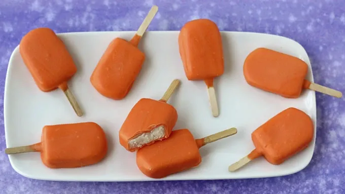 - If you’re a fan of orange Creamsicles™ and love sweet treats, these cute little candy pops are perfect for you! Each tiny pop has a creamy vanilla candy center and is coated in orange-flavored candy coating. They look and taste like a Creamsicle™, but they’re bite-sized and don't have to be kept in the freezer. This recipe for these fun sweets was inspired by Elizabeth LaBau's Orange Creamsicle™ Patties recipe. To create these pops, you first need to make some vanilla cream candy. It's super simple to do. Tip: If candy coating is too thick, add a small amount of paramount crystals or shortening to thin it out. Allow the candies to get to room temperature before serving.