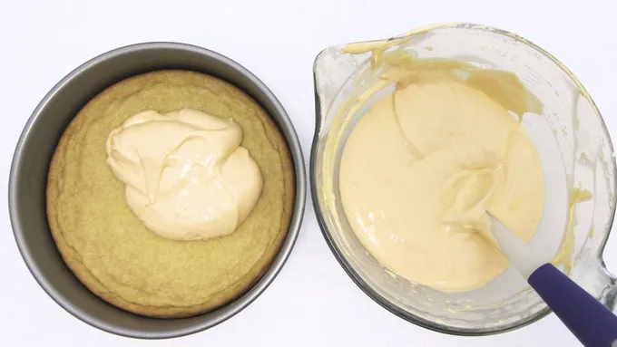 Press half of the cookie dough into the prepared pan to form crust. Bake 14 to 16 minutes or until lightly golden brown.