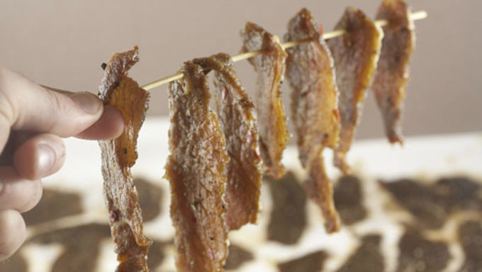 Step7Remove jerky from skewers and let cool completely. Store in an air-tight bag and refrigerate for up to 3 weeks.