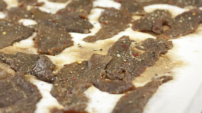 - People were making jerky before fancy equipment like dehydrators existed. Like thousands of years before dehydrators existed. Drying meat has been around forever as a way to store meat. It also just happens to be really delicious! The dehydrating industry probably doesn’t want you do know this, but you need only three things to make really top-notch jerky: 1) Time 2) Mild heat 3) A fairly dry environment. Luckily, the last two can be provided by a piece of equipment you almost certainly have already: an oven. You might be asking: “Is this is worth it?” Given that I recently saw four ounces of jerky for $8 and I made three pounds of it for about $15, I think that it is very much worth it if you are a serious jerky fan! Oven beef jerky is really not that hard to make and will save you loads of money if you are a real beef jerky fan. You can technically make jerky out of any meat, but I do prefer beef. It lends itself well to strong flavoring. When it comes to what cut of beef to use, it’s hard to go wrong. I would recommend using something on the leaner side without a lot of fat and also something that is pretty cheap. Buying a $20/pound ribeye and making beef jerky isn’t the best idea. Personally, I like to use top round roast for my jerky. If you have a nice butcher, they will slice your roast thin for you. In fact, I would recommend calling around until you find someone who will do this for you because it’s not easy to do yourself. Unfortunately, on this day, my town was fresh out of nice butchers so I was left with a three pound roast and a sharp knife. If you find yourself in a similar predicament, you can do it. Just take your time and try to slice the meat as thin as possible. It will be slightly uneven and not perfect, but that’s fine. Just call it "rustic." Once your beef is sliced the hard part is over. The rest is just time and flavor.