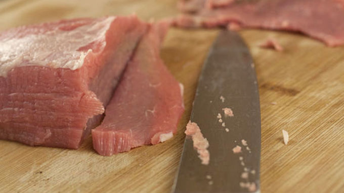 Step4Skewer the beef slices about 1/2 inch apart on bamboo skewers.