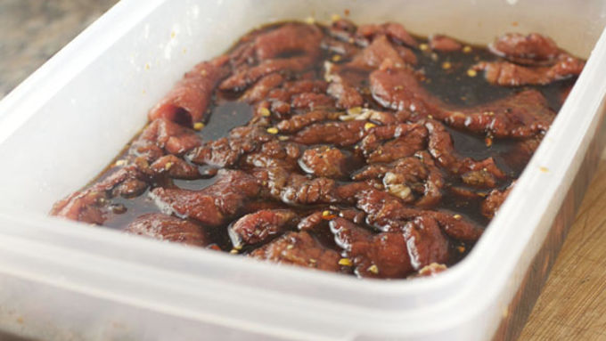 Step2Mix together other eight ingredients in a large bowl and then add beef slices to the mixture. Store in an air-tight container and refrigerate for 12 hours.