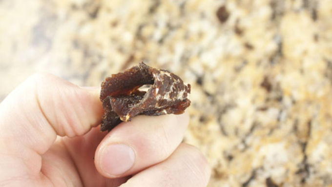 Step6When jerky is done it should be dark, dry, and crack apart a bit when you bend a piece.