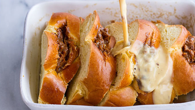Just when you thought caramel-pecan rolls were breakfast's best friend, along comes this French toast casserole, stuffed with caramel and pecans. Too delish to even describe!