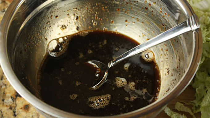 Step2Combine tamarind paste, 1 tablespoon peanut oil, fish sauce, honey, rice vinegar, and red pepper flakes in a bowl. Whisk well to combine and set aside.