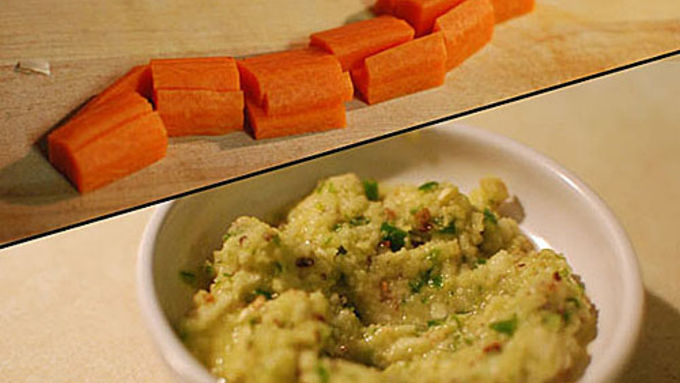Step5Now we are ready to start cooking! Saute the carrots and onions in a small amount. After about 5 minutes, add the chile, ginger, and garlic paste to the pot. Next add the rice and stir to coat.