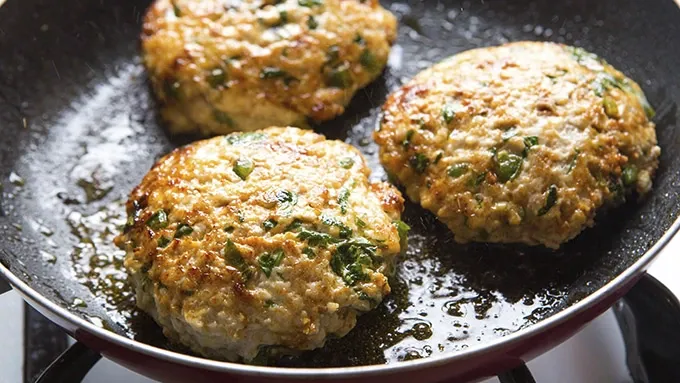 Melt coconut oil in a large skillet. Cook patties until cooked through. Remove from heat and cool slightly before serving.