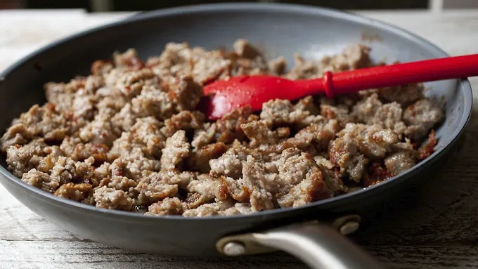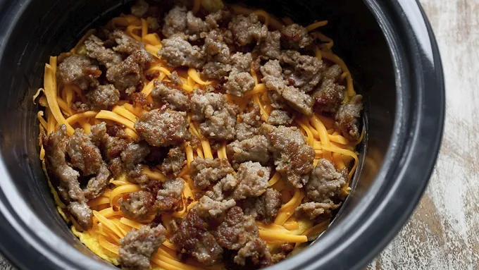 Step2Cook breakfast sausage in a large skillet, breaking it up as it cooks until it’s browned nicely and cooked through, about 8 minutes. Season sausage with salt and pepper.