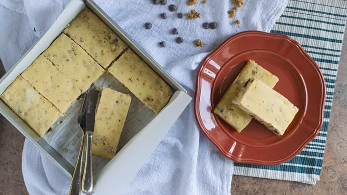 Step4Let bars cool, slice into eight pieces. Serve immediately, pack on the go, or freeze for up to one month.