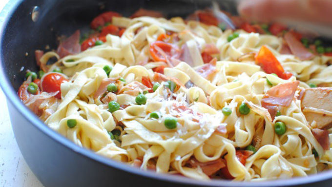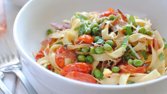 Pasta Fresca with Prosciutto, Peas and Tomatoes is a fresh and easy meal to toss together.
