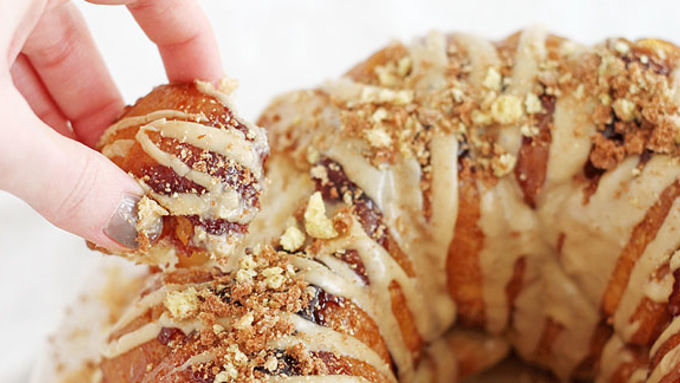 Just when you think monkey bread is just monkey bread, we go and add peanut butter and jelly. And don't think this is just for the kids, either – this is a treat even adults will love.
