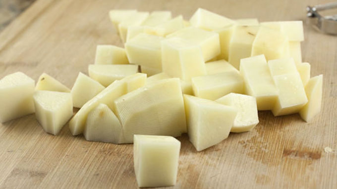Step1Peel potato and dice it into one-inch cubes.