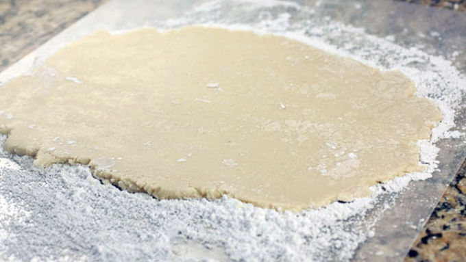 Step5Lay out a large piece of wax paper and divide your potato dough in half. Sprinkle wax paper with a heavy coat of powdered sugar. Roll out one half of potato dough and cut into a large rectangle about 8x4-inches. It doesn't have to be exact.