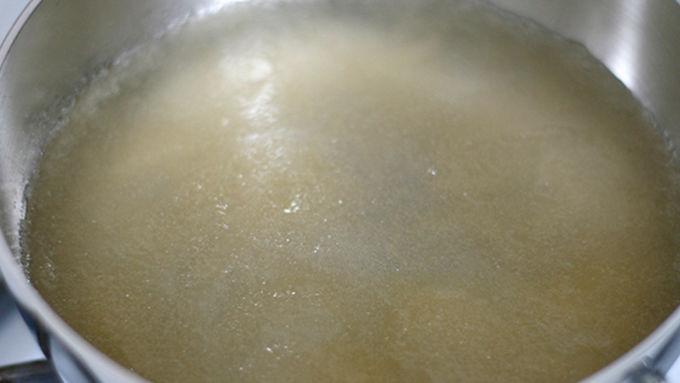 Step2Pour 1 cup water into a small saucepan. Sprinkle 4 packets of unflavored gelatin over the top and allow it to soak in a minute or two (it will sort of look like applesauce). Turn on the burner and heat over medium, stirring constantly, until gelatin dissolves (this will only take a couple minutes).