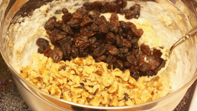 Step5Fold in walnuts and raisins.
