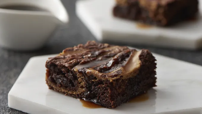 Forget about boozy hot chocolate; this holiday season, it’s all about booze-infused brownies. Made easy with Betty Crocker™ Supreme original brownie mix and a minty schnapps chocolate topping, these brownies are guaranteed to be the life of the party. Grab a fork, because this dessert is decadently dense.