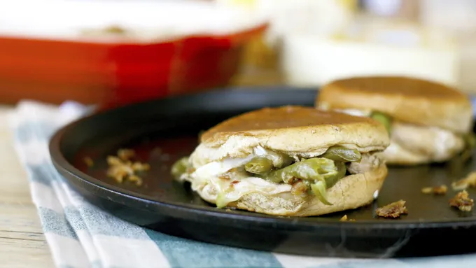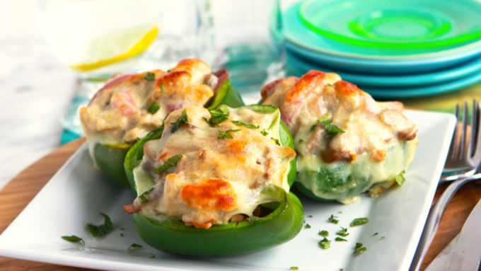 - This easy Philly Turkey Stuffed Green Peppers recipe shows you how to make a stuffed dinner so good, you'll wanna write a song about it. Hey baby. Prep your vocal cords. And your tastebuds. And your dinner napkin. Because you're gonna need all three for this crazy delish mealio. It's all the flavors of Philly Cheesesteak, stuffed in a pepper, and made healthier with the swap in of turkey instead of beef. See? Vocal cords, tastebuds, napkins. Let's do this thang, dollface. Pull your hot roasted peppers from the oven, and grab a dinner plate, stat. It's time to dive in, fork and knife, and plunge Philly Turkey Stuffed Peppers into your mouth. Yeow. You rocked that meal right into the history books!