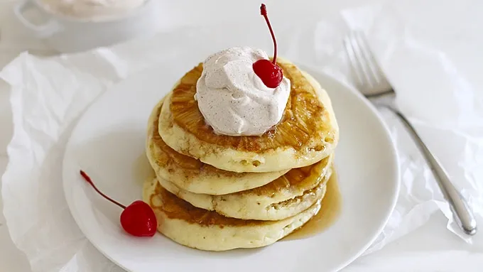 The flavors of pineapple upside-down cake come to breakfast in these delicious pancakes.