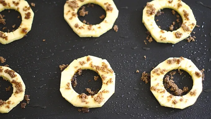 Heat griddle or skillet over medium heat. Brush lightly with butter or oil. Cook pineapple rings 2 minutes. Sprinkle with brown sugar, then flip and cook another 2 minutes until caramelized. Transfer to a plate.