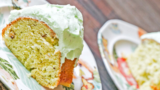 This delicious pistachio cake is made with ingredients like club soda, pistachio pudding and walnuts that all give this boxed cake a unique twist!