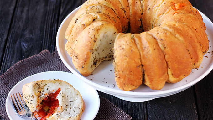 - A ridiculously fun and delicious twist on your favorite pizzas! Just when you thought pizza couldn’t get any more delicious, along comes this super cool way to eat it – baked inside of monkey bread - Pizza Monkey Bread! Whaat? You heard right. And it's super easy to make too! Chop up some of your fave pizza toppings. Use anything you like (as long as you can chop it into small pieces that will fit inside of the pizza pockets). Be sure to cook any raw meat, like sausage, ahead of time. Then just stuff the pockets with tasty goodies, pack them all cozy-like into the bundt pan, bake and devour. Serve it up with extra marinara sauce for dipping, if you’d like. A perfect snack for game day or an easy weeknight dinner. Your friends and family will love you!