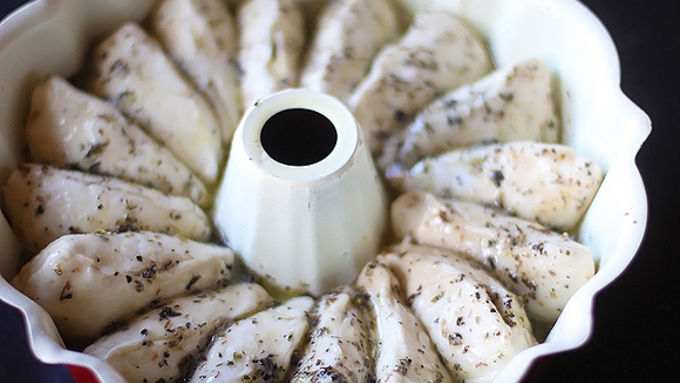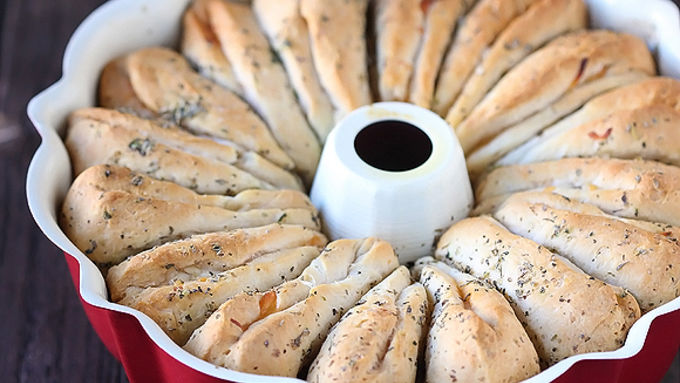 Step9Carefully turn the bundt pan on top of a plate and give it a slight jiggle to release the monkey bread. Then remove the pan and serve the monkey bread with a side of extra marinara sauce for dipping.