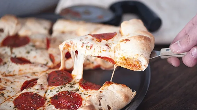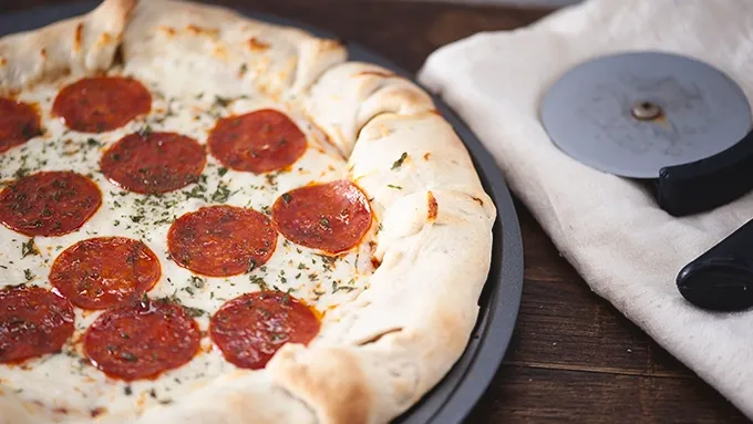 Level up your pizza game with pizza roll stuffed-crust pizza!
