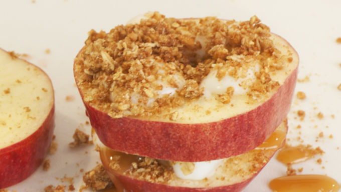 Step4Layer the yogurt, granola sauce between the apple slices.