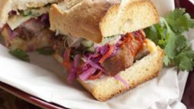 - Banh Mi (or bánh mì) are popping up everywhere these days, it seems, and no wonder: cheap, fast and filling has always been a winning combination. A Vietnamese baguette, when done correctly, is ethereal and light with a delicate crust. It is the perfect vessel for a sandwich, and the banh mi — a type of sandwich usually made with grilled meat (pork or chicken are most common), cilantro and pickled carrots and daikon (called do chua) — is a perfect marriage of Vietnamese and French culinary traditions. I’ve had banh mi many ways: BBQ chicken; “the works” with thinly sliced ham roll, grilled pork and pâté; and shredded pork skin with tripe. I've made them a few times myself, too, because A) they're really easy and B) I really couldn't stand the shredded pork skin and tripe version (which I received by mistake). I'm still a little terrified that the person taking my order will misunderstand me and that I'll end up getting it by accident again. Oh, most important, C) I'm a bit of a control freak, so making my own lets me know exactly which meat I'm using. It's hard to find free-range, local, organic meat in a $4 sandwich. If you don't want to fuss with meatballs, you can use store-bought rotisserie chicken dressed up with 1/4 cup of hoisin sauce mixed with a teaspoon of fish sauce, a teaspoon of sugar, one minced garlic clove, a tablespoon of finely chopped lemongrass and some black pepper. You can also grill thinly sliced pork with this sauce. If you're a vegetarian, you can make a version with an omelet, seitan (mock duck), tempeh or tofu; use the same sauce, but with soy sauce instead of fish sauce. If you like weird stuff like head cheese (like I do, the good German girl that I am), this is a great place to use it. Layer on your do chua and a handful of cilantro. Add some thinly sliced jalapeño if you like your food to hurt a little. Enjoy with a beer and chips. Make a picnic of these, and you will rule!