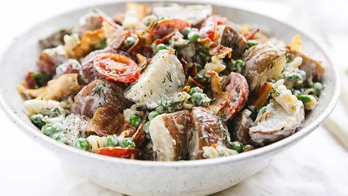 Can’t decide which dish to take to your next potluck? Take two favorites in one with this potato-pasta salad. Tossed in a creamy Caesar sauce, it’s guaranteed to disappear quick.