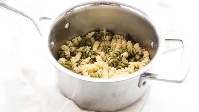 Step1In a large pot, stir together Suddenly Salad™ pasta and broth. Bring to a boil and cook for 13-15 minutes, stirring often, until pasta is tender and broth is cooked off.